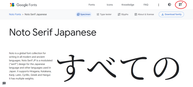 <link rel="preconnect" href="https://fonts.googleapis.com"> <link rel="preconnect" href="https://fonts.gstatic.com" crossorigin> <link href="https://fonts.googleapis.com/css2family=Noto+Serif+JP:wght@400;500;700;900&display=swap" rel="stylesheet">
